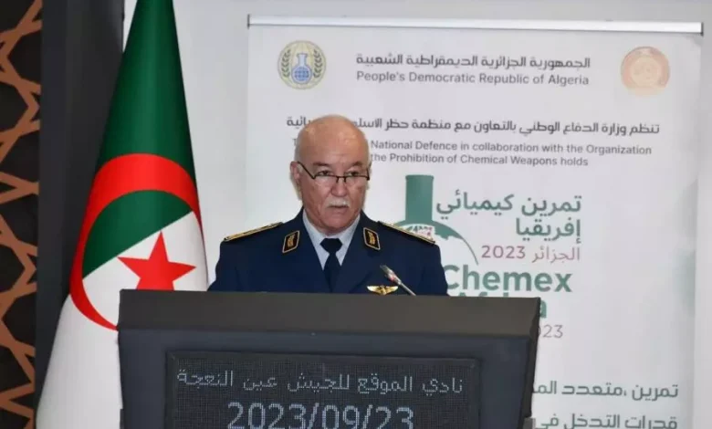 « Monsieur le secrétaire général du ministère de la Défense nationale(MDN), le général-major Mohamed Salah Benbicha, a supervisé ce samedi 23 septembre au niveau du Cercle de Garnison de l’Armée nationale populaire d’Aïn Naâdja, Alger/1e RM, la cérémonie d’ouverture de l’exercice, à composantes multiples, de renforcement des capacités d’intervention en cas d’urgence chimique, intitulé « Chemex Afrique », destiné aux représentants des Etats-Parties à la Convention sur l’Interdiction des Armes chimiques (CIAC) de la région d’Afrique », a souligné la même source.